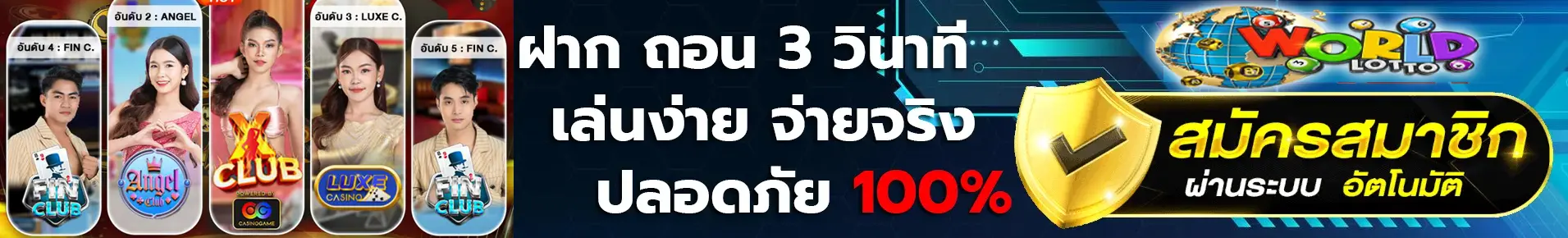 worldlotto คาสิโนสดระดับโลก อันดับ 1 ที่ทุกคนเชื่อมั่น เล่นง่าย จ่ายจริง 100% ไม่ต้องทำเทิร์น การันตีความมั่นคง ให้บริการ สล็อต บาคาร่า เสือมังกร รูเล็ต ไฮโลซิกโบ Sicbo หวย ฟุตบอล ระบบฝากถอน อัตโนัติ 3 วินาที รวดเร็ว ทันใจ ทำกำไร 24 ชั่วโมง มีแอดมินบริการดูแลเอาใจใส่ตลอดเวลา